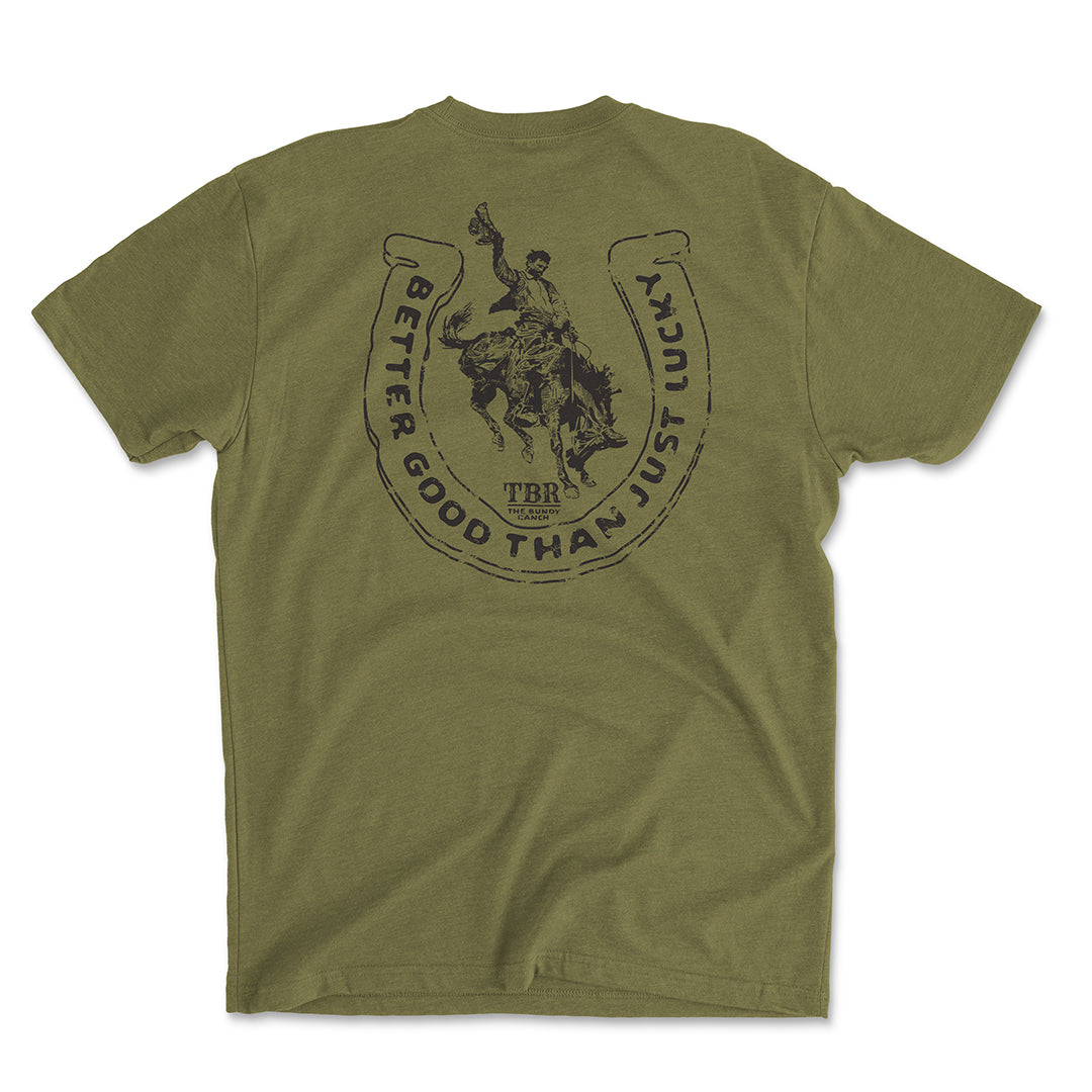 Pack Three of our Lucky Saddle Hoodie, Lucky Military Green Shirt and Loden Green/Black Embroidered hat bundled together for a better way to enter!